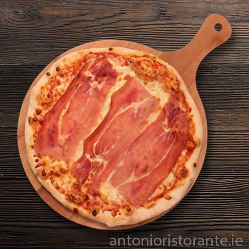 Tomato sauce, mozzarella cheese, finished with slices of Parma ham, parmesan cheese and a touch of an aged balsamic reduction from Modena.