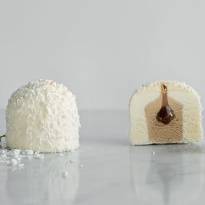 Coffee and zabaglione ice cream with coffee filling and wrapped with delicious tiny meringues.